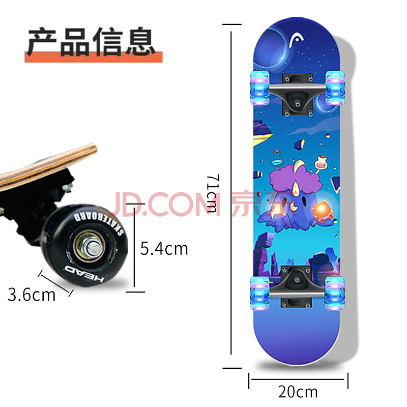商品相册:海德(HEAD)儿童滑板双翘板3-7岁初学者宝宝款创新可调节四轮滑板车 魔法星球第1张/共8