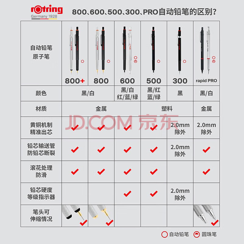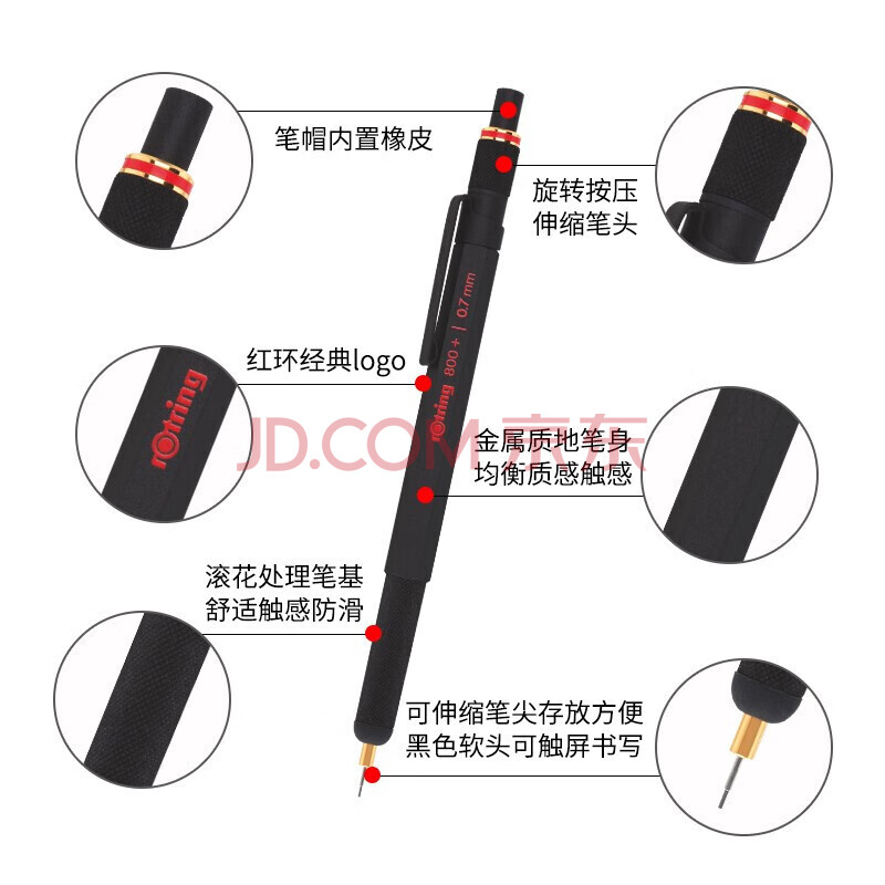 商品相册:红环(rotring)自动铅笔0.7mm/触屏笔多功能 德国专业绘图工具-800+系列黑色单支装第