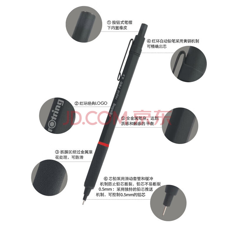 商品相册:红环(rOtring)自动铅笔0.5mmPro系列黑色单支装 学生日常书写专业绘图工具第1张/共6