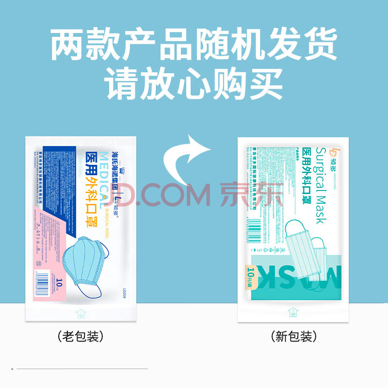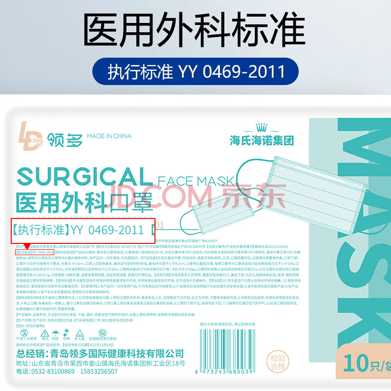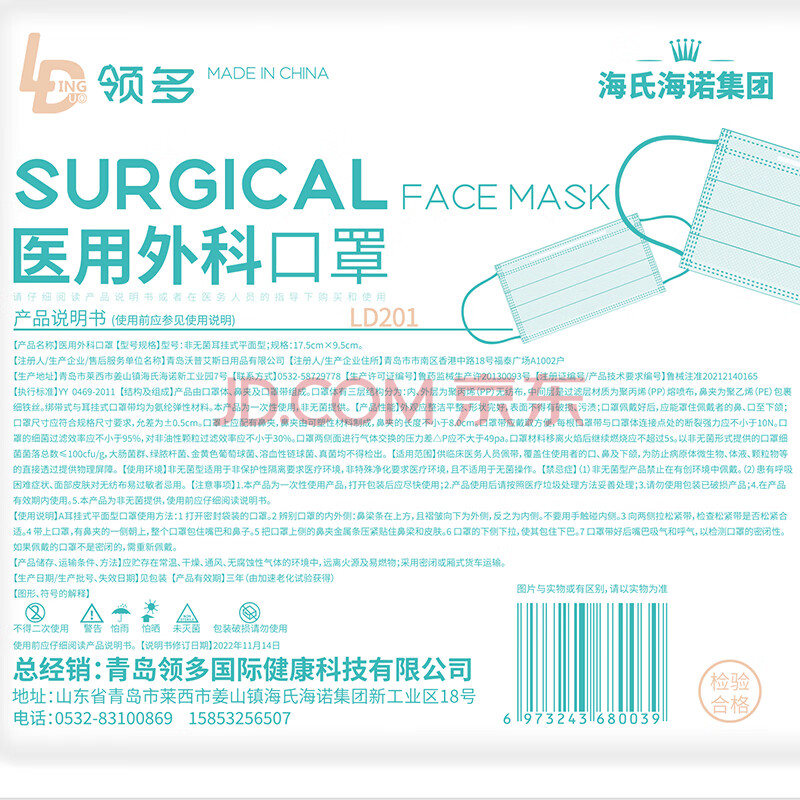 商品相册:海氏海诺领多 医用外科口罩白色一次性非无菌防飞沫防尘口罩医用10只*20包第