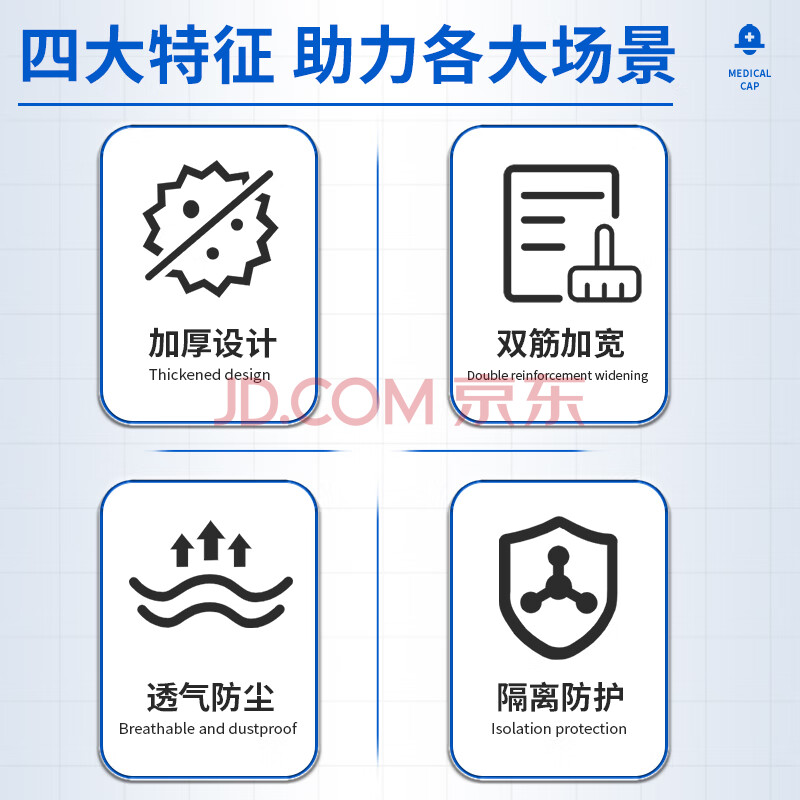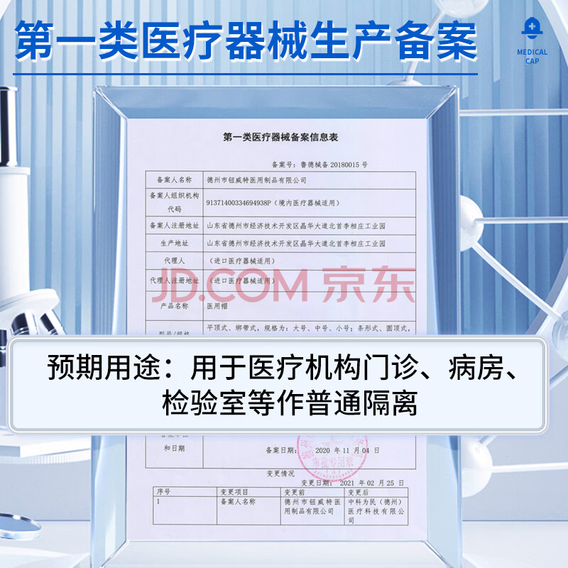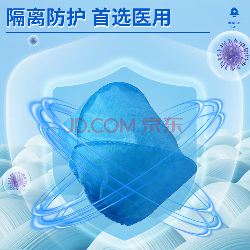 商品相册:藏百年 一次性医用帽医生手术帽子手术室护士园帽防尘帽蓝加厚口腔牙科第