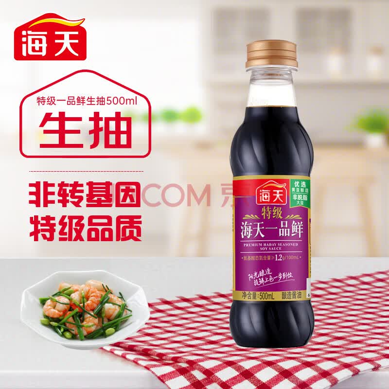 商品相册:海天酱油装酿造生抽凉拌点蘸轻便特级一品鲜500ml*12瓶【整箱】第