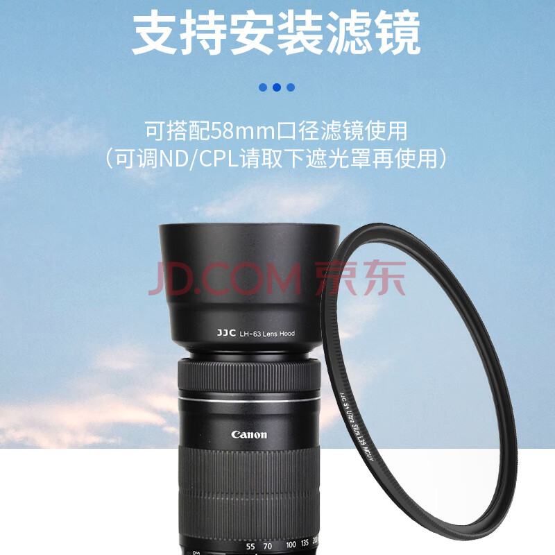 商品相册:JJC 适用佳能EF-S 55-250 IS STM遮光罩58mm镜头80D 90D 200D2II二代 700D 800D单反相机配件ET-63第1张/共3