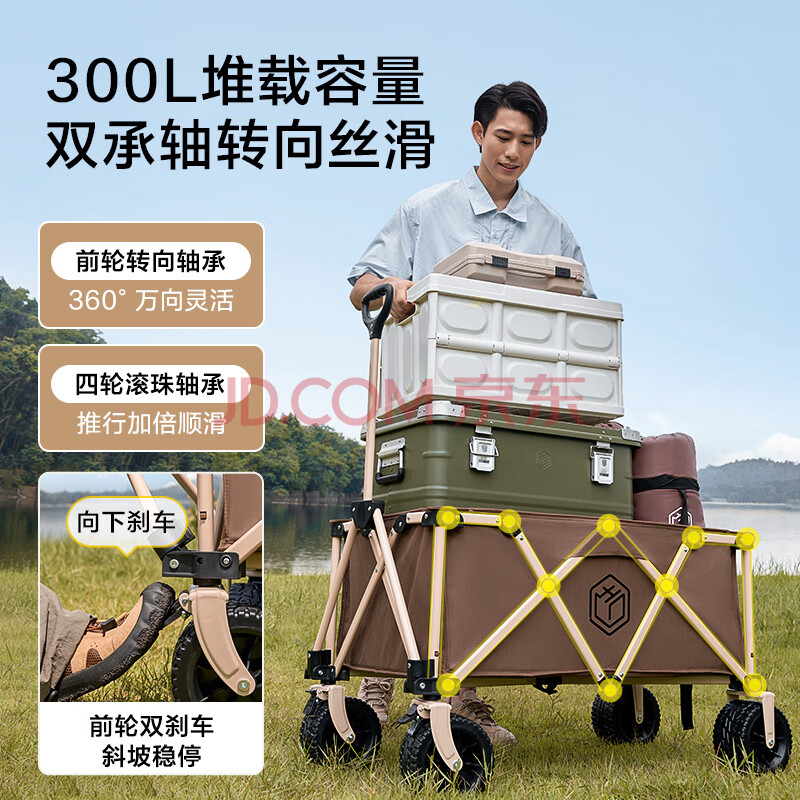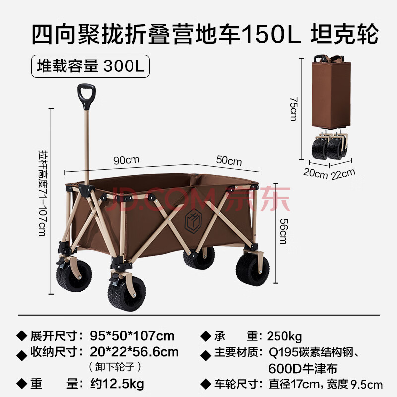 商品相册:京东京造聚拢型坦克轮户外露营车折叠推车营地车野餐摆摊双刹可拆轮深咖色第