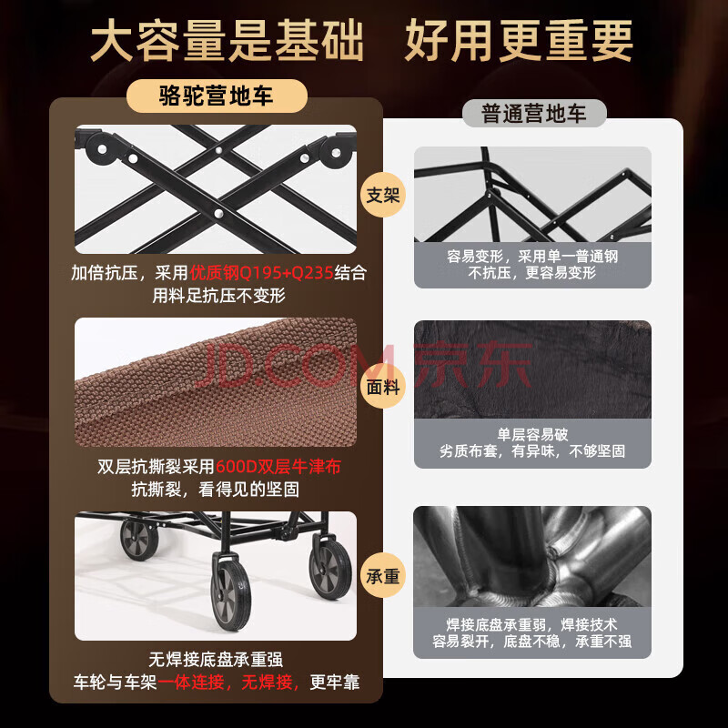 商品相册:CAMEL露营车户外折叠推车营地买菜溜娃遛狗车野餐大容量拉快递儿童可躺第