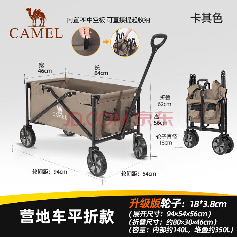 商品相册:CAMEL露营车户外折叠推车营地买菜溜娃遛狗车野餐大容量拉快递儿童可躺第