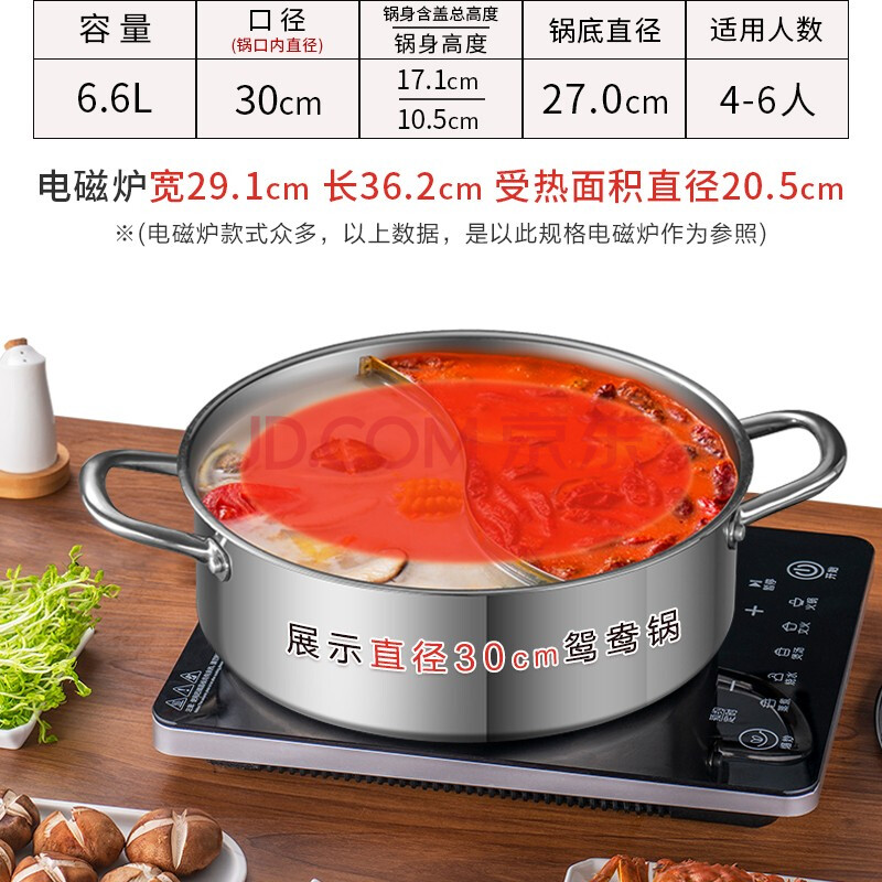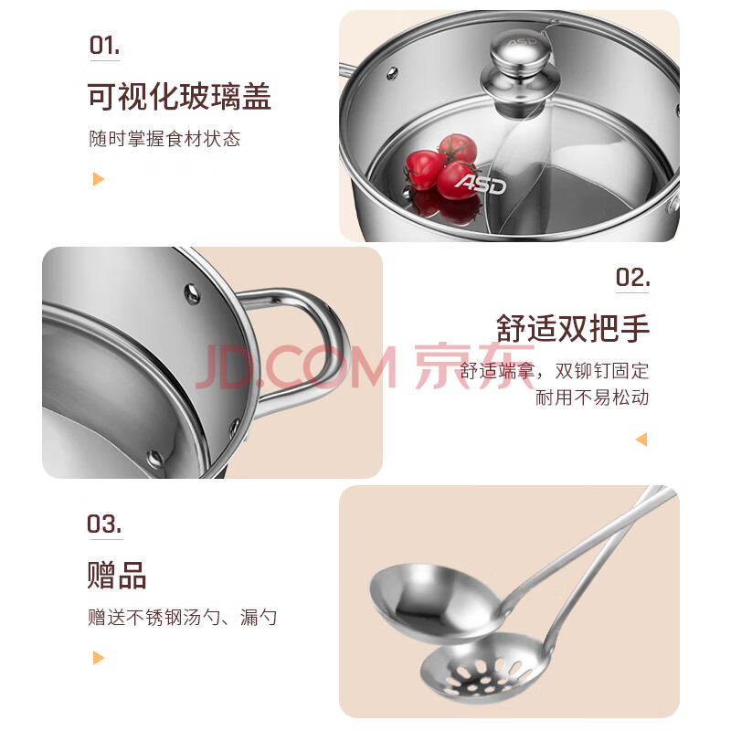 商品相册:爱仕达 ASD 火锅304不锈钢不串味鸳鸯锅30CM火锅燃气电磁炉通用FS30H3Q第