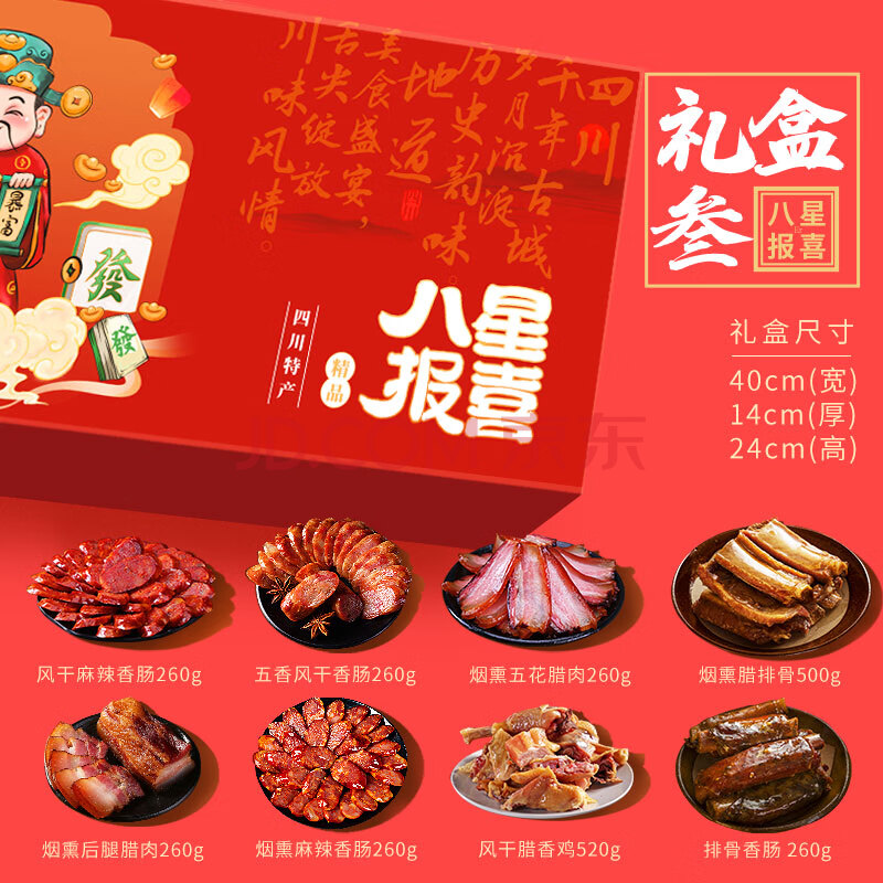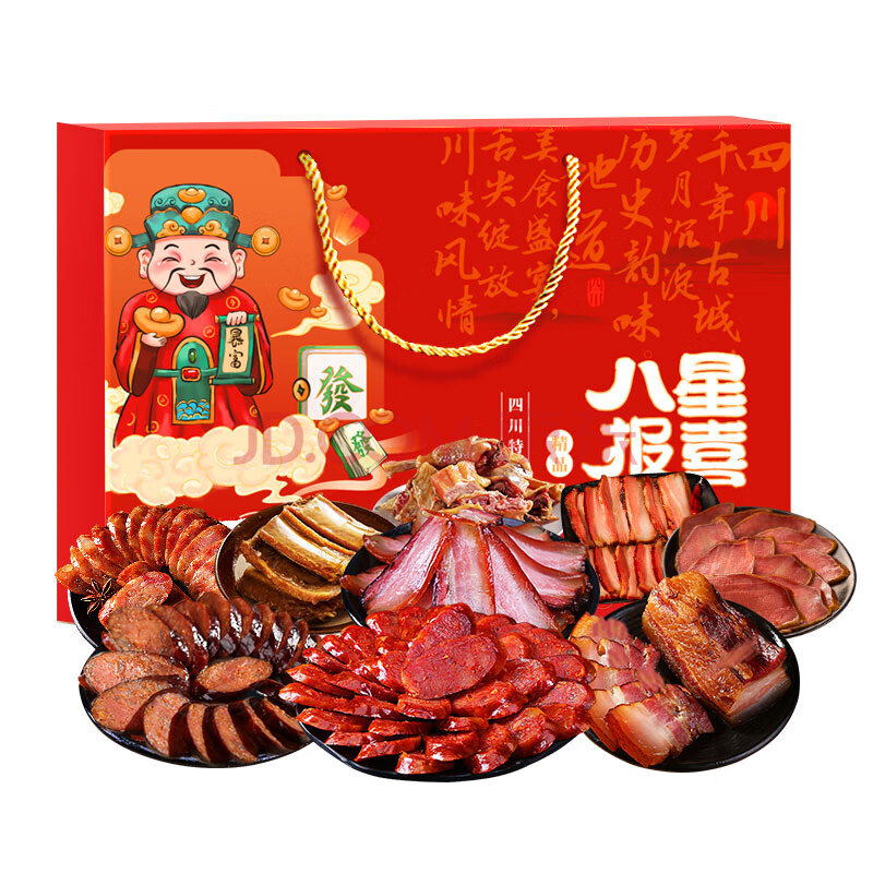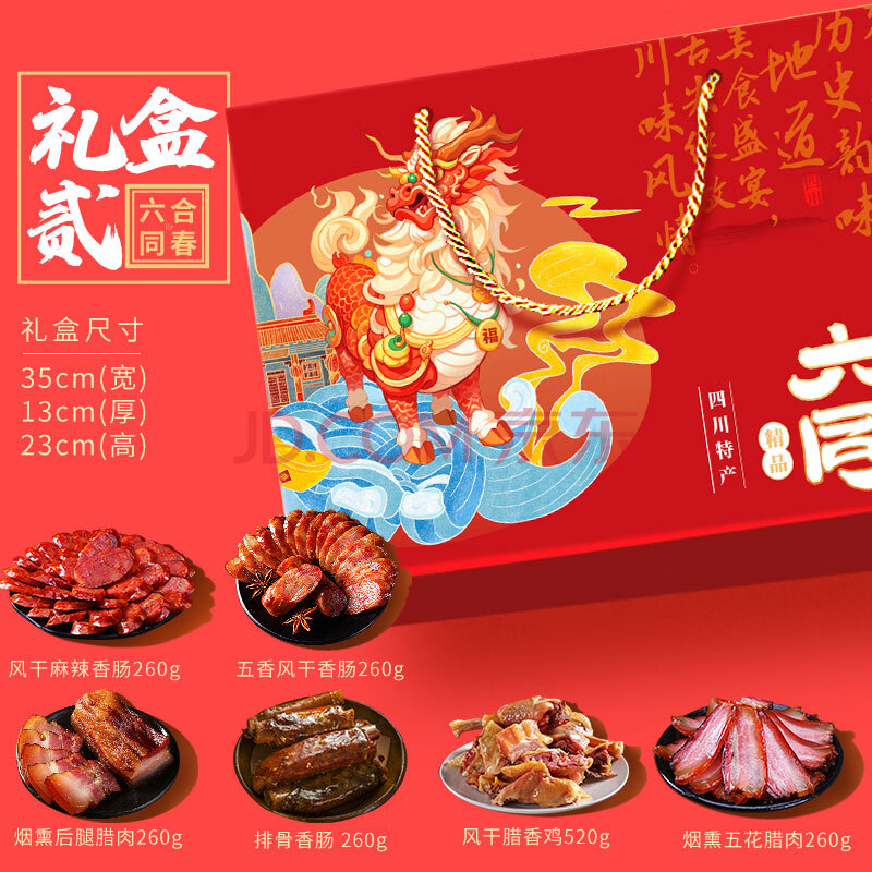 商品相册:六味魔方四川特产礼盒正宗麻辣香肠腊肠烟熏五花腊肉风干鸡熟食腊味2580g第1张/共9