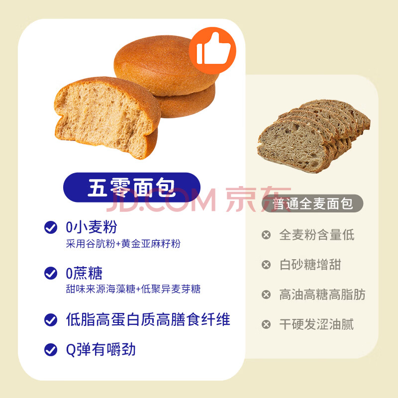 商品相册:麦吉士五零面包高蛋白轻态欧包无面粉无蔗糖零食品非全麦面包6袋第