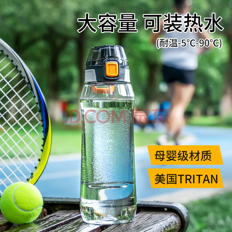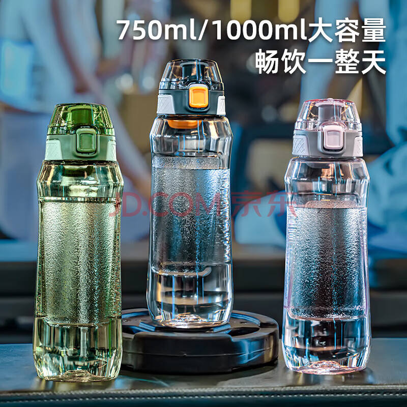 商品相册:JEKO&JEKO运动水杯大容量水壶骑行夏季男士健身塑料杯子Tritan水瓶1L透明灰第