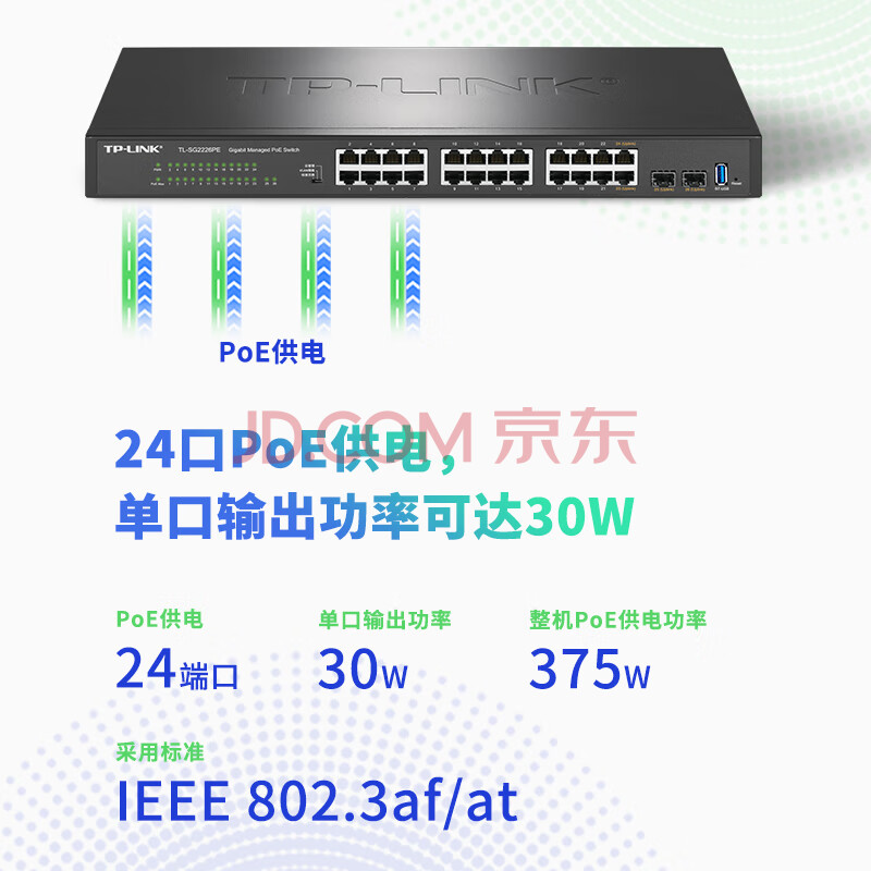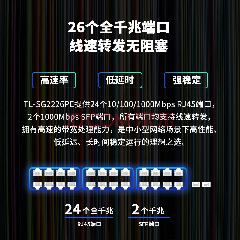 商品相册:TP-LINK 26口全千兆Web网管云管理PoE交换机 (24PoE口+2千兆SFP) 企业级分流器 分线器TL-SG2226PE第1张/共7