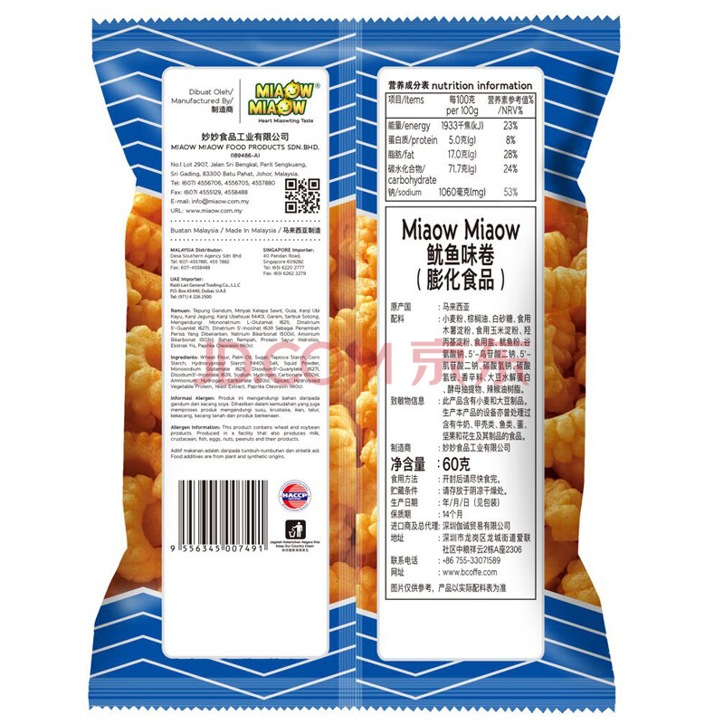 商品相册:MIAOW MIAOW妙妙 鱿鱼卷(膨化食品)60g*3袋 进口零食 休闲食品第