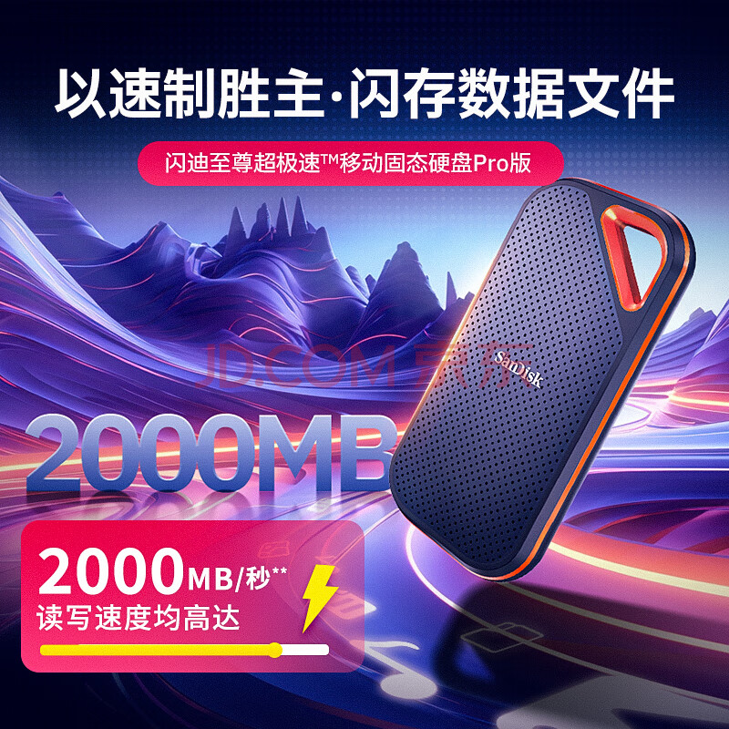 商品相册:闪迪(SanDisk)1TB Nvme移动固态硬盘(PSSD)E81至尊超极速Pro版SSD 读速2000MB/s 手机直连笔记本外接 三防保护第1张/共6