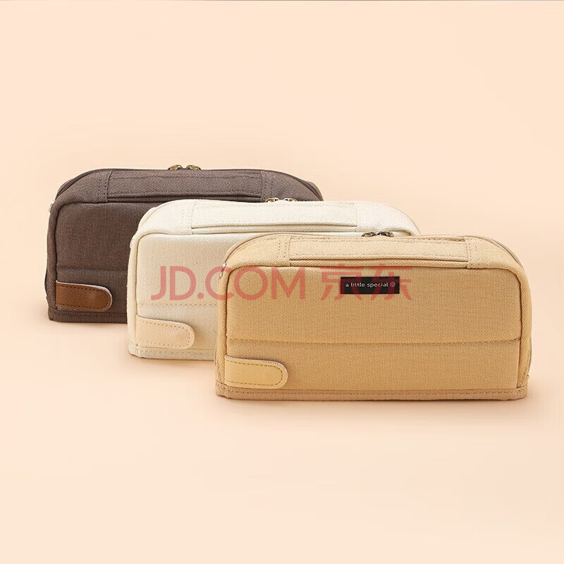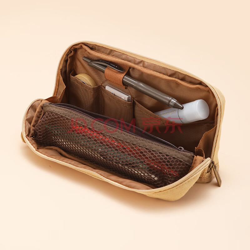 商品相册:国誉(KOKUYO)一米新纯系列初中大容量高颜值笔袋学生多功能文具盒手提收纳帆布包 浅棕色 1个装 WSG-PCS133NLS第