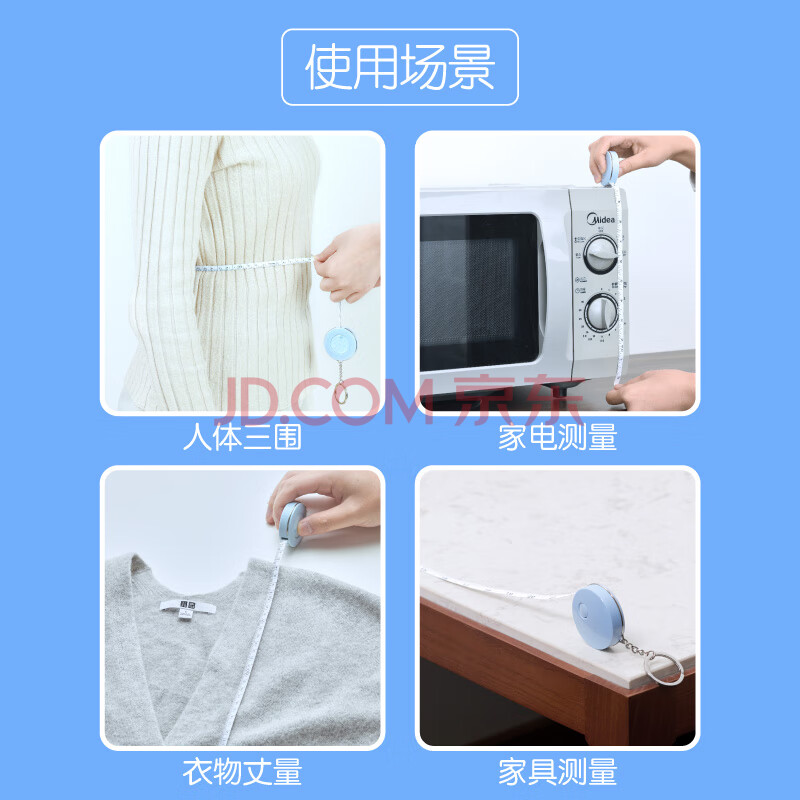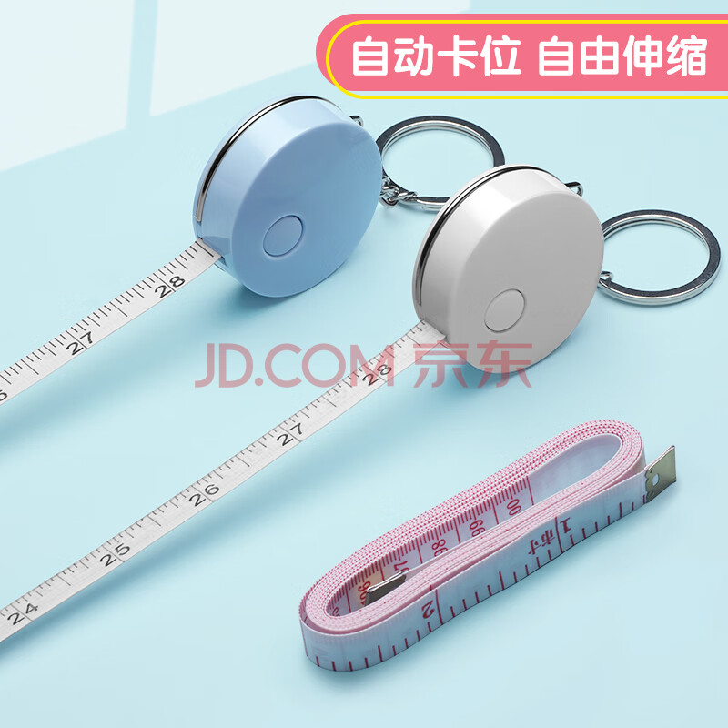 商品相册:DSB(迪士比)卷尺软尺皮尺 迷你卷尺自动卡位米尺量三围钥匙扣伸缩尺子便携随身2米蓝色 LT-721第
