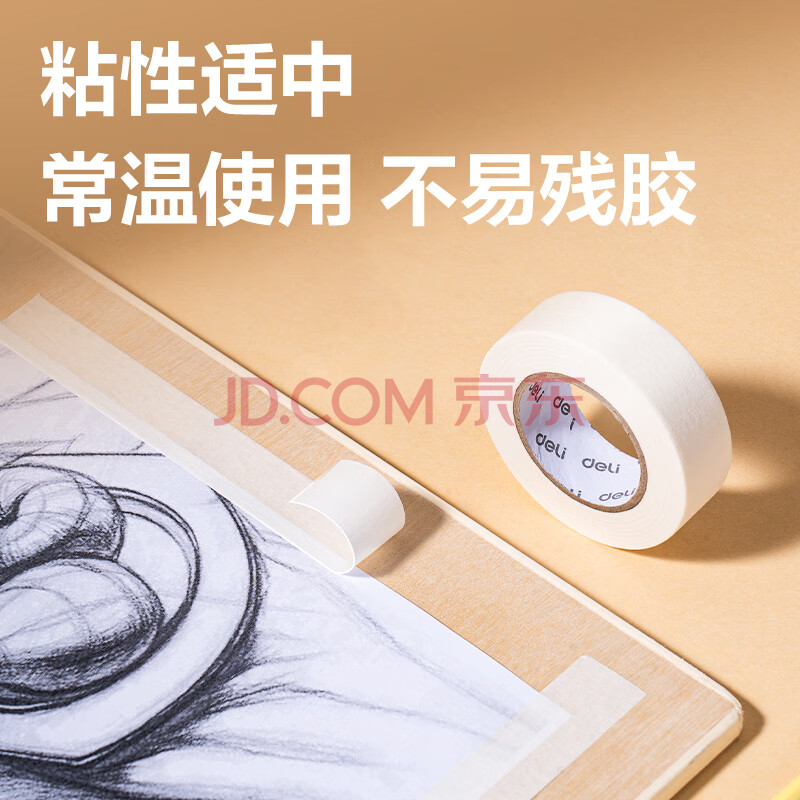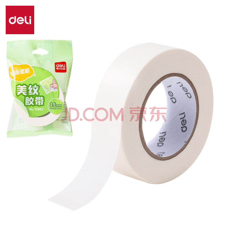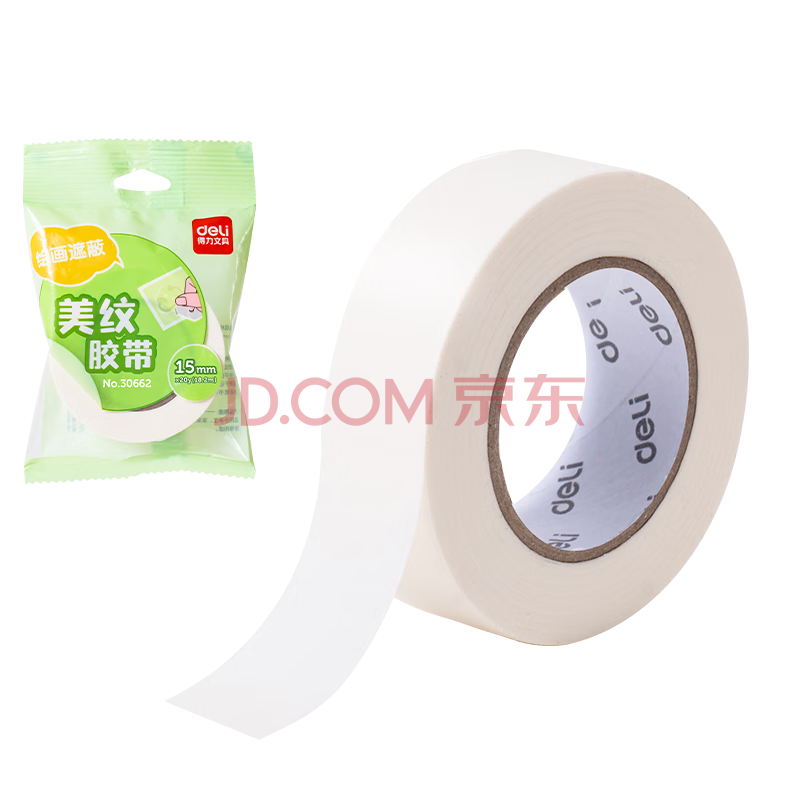 商品相册:得力(deli)美纹纸胶带 美术美工分色 拼豆豆DIY装修遮蔽美缝贴膜刷漆保护不易留痕贴纸 小卷芯1卷 30662第