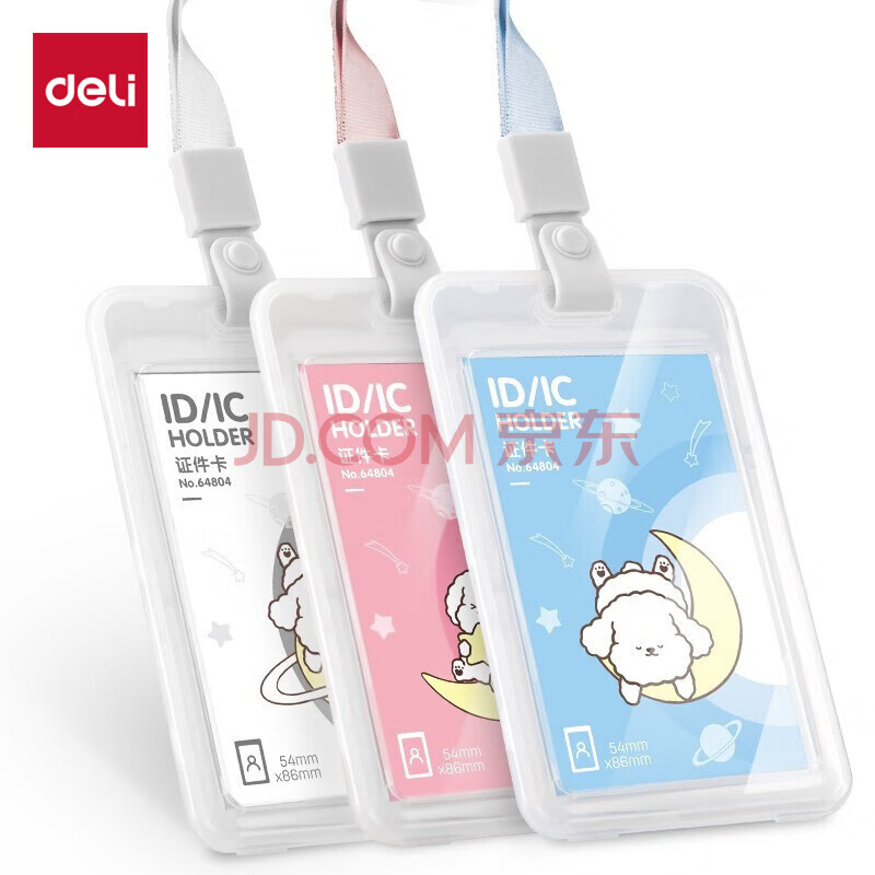商品相册:得力(deli)卡通证件工作牌透明塑料卡套 工牌身份证公交卡套饭卡地铁卡套校园卡 挂绳款学生胸牌白色64804第