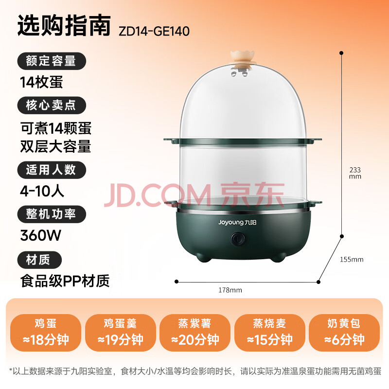 商品相册:九阳(Joyoung)煮蛋器多功能智能蒸蛋器 一键启动14个蛋量 ZD14-GE140第