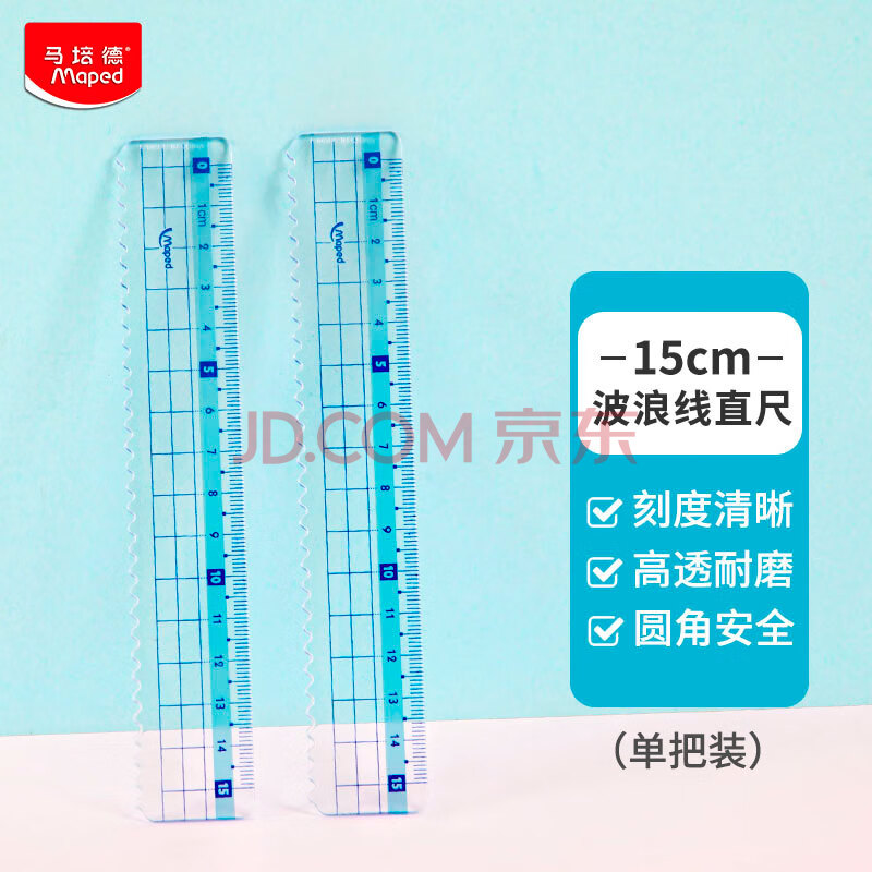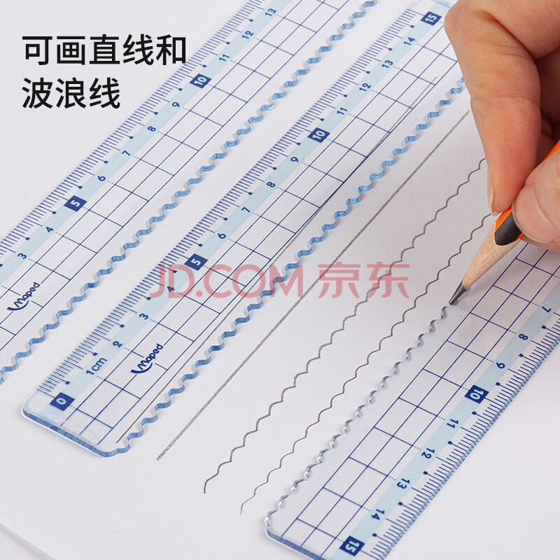 商品相册:马培德(Maped)【开学必购】15cm彩趣波浪线直尺 带波浪线刻度尺 初高中小学绘图考试学习尺子 210802CH蓝色第