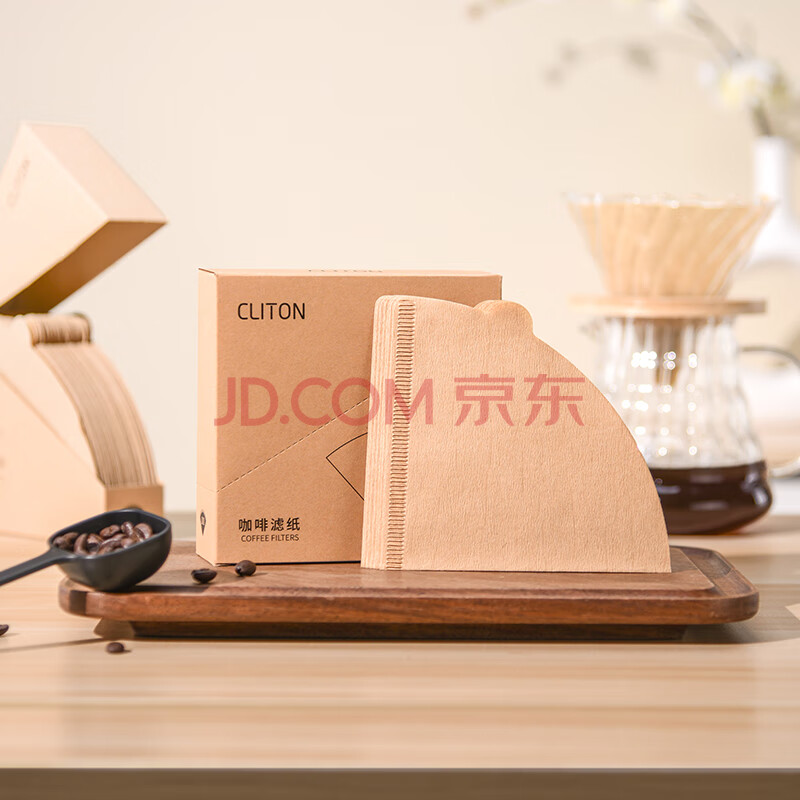商品相册:CLITON咖啡滤纸 原木便携滴漏式手冲咖啡粉过滤网 V型滤杯用滤纸100张第1张/共7