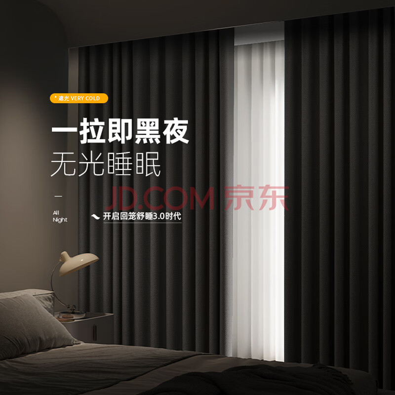 商品相册:阿黎遮光窗帘家用全遮光布帘免打孔挂钩式卧室隔音保暖防风窗帘布第