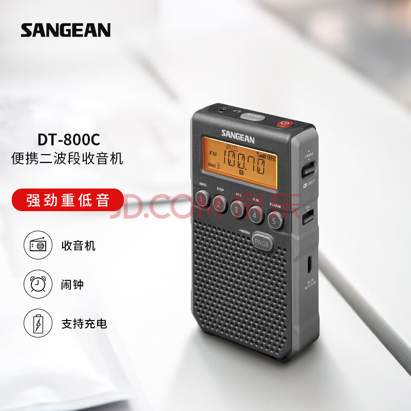 商品相册:山进(SANGEAN)DT-800C 数调迷你闹钟收音机便携式老人半导体学生校园广播FM英语四六级第1张/共9