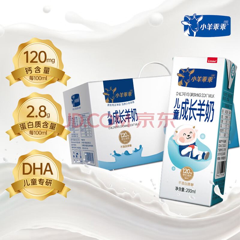 商品相册:小羊乖乖儿童羊奶 高钙早餐奶鲜奶 3-15岁学生山羊奶200ml*15盒装第