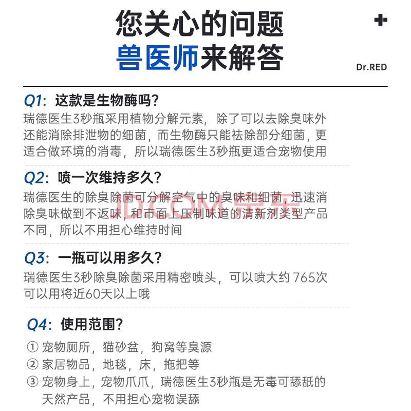 商品相册:瑞德医生宠物除臭剂狗狗除臭喷雾猫尿分解猫砂除味非生物酶消毒杀菌-2瓶装第