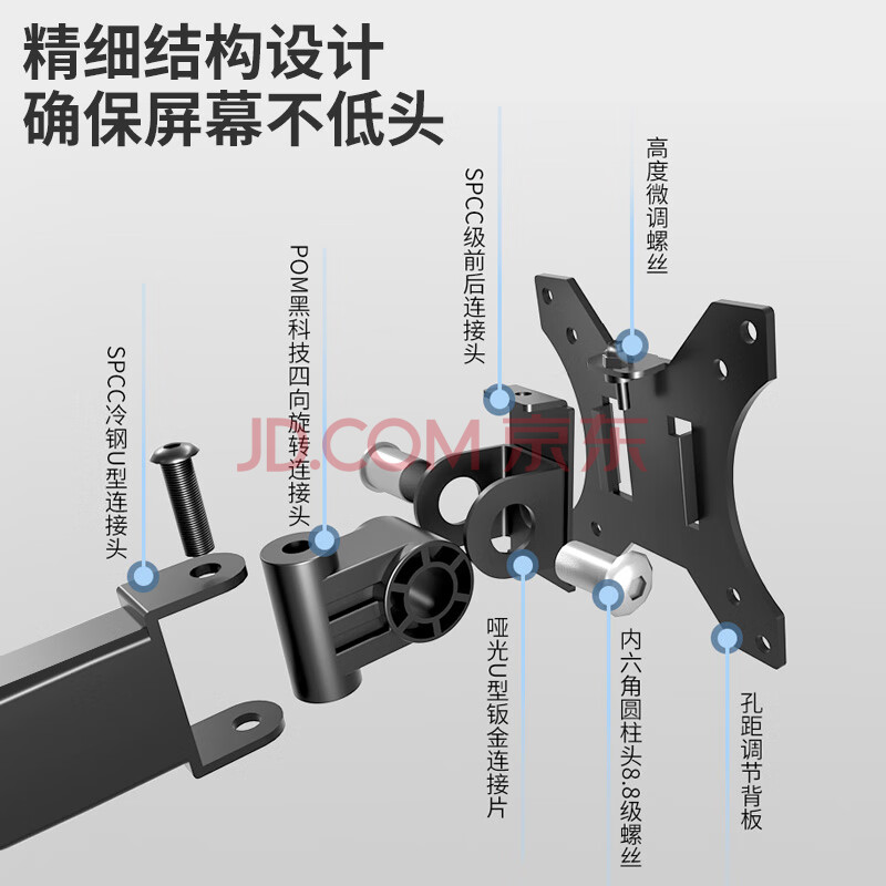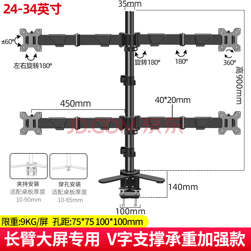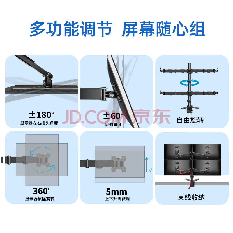 商品相册:旺琪上下/左右四屏显示器支架多屏组合桌面增高架横/竖屏旋转伸缩机械臂24-34英寸炒股监控第
