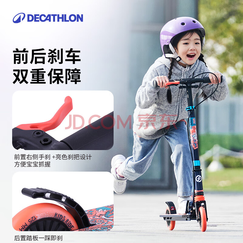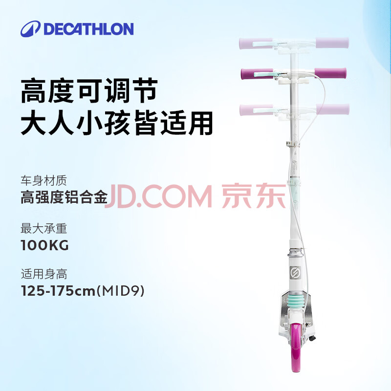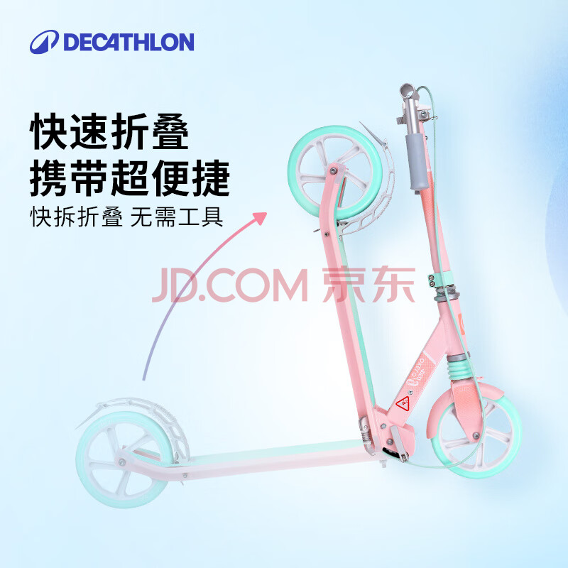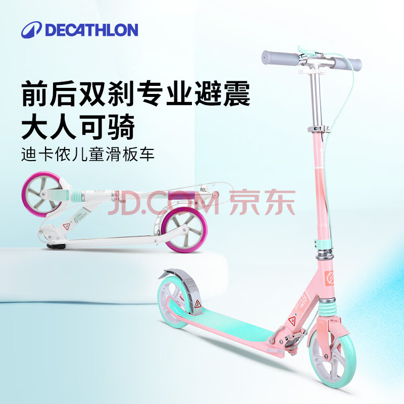 商品相册:迪卡侬青少年滑板车带手把刹避震代步车可折叠两轮车Mid9粉蓝4324637第