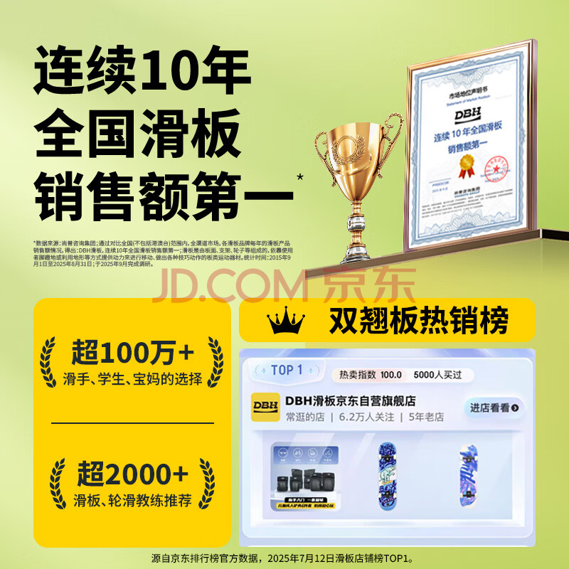商品相册:DBH滑板儿童专用初学者男女生专业板新手双翘板7.5英寸 蓝象送护具第