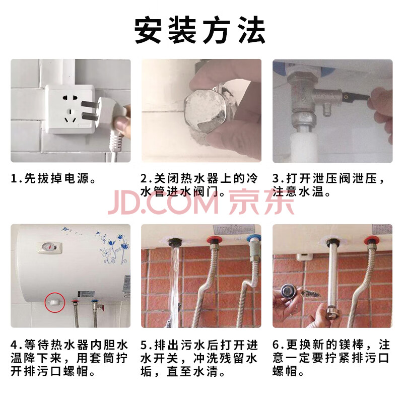 商品相册:爽威 适配海尔电热水器镁棒 家用热水器镁棒60升通用排污水垢除垢阳极棒配件 350mm长 热水器镁棒HM60L第