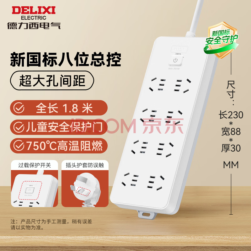 商品相册:德力西(DELIXI) 3C认证国标插座/插线板/插排/排插/拖线板/插板/接线板 8位五孔总控开关 1.8米第