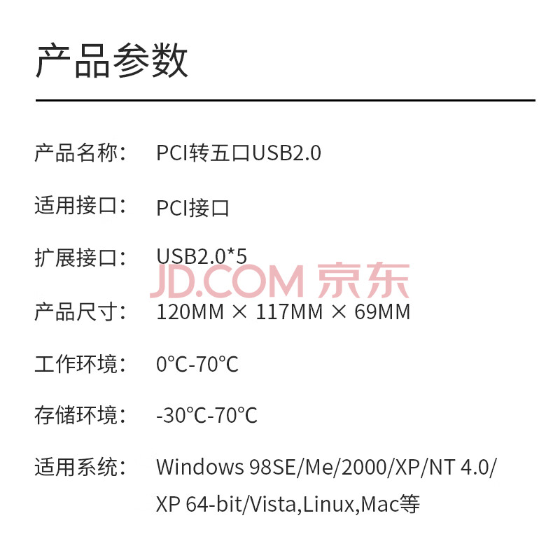 商品相册:魔羯(MOGE)MC1013 PCI转USB2.0五口扩展卡/转接卡 台式电脑主机后置5口USB2.0扩展第1张/共3