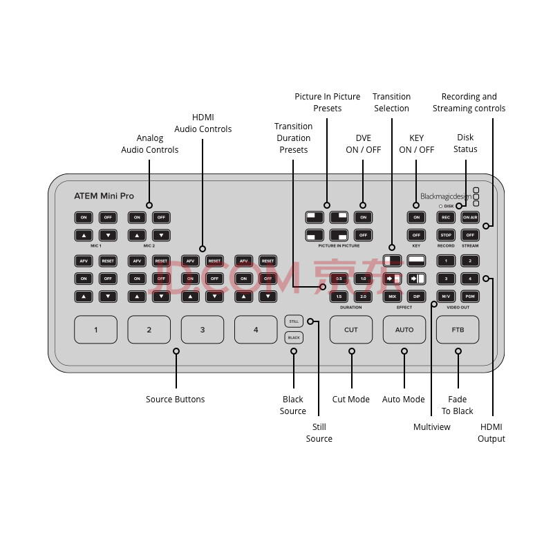 商品相册:blackmagic design ATEM Mini Pro BMD切换台 ATEM广播级现场制作多机位导播台 切换台第