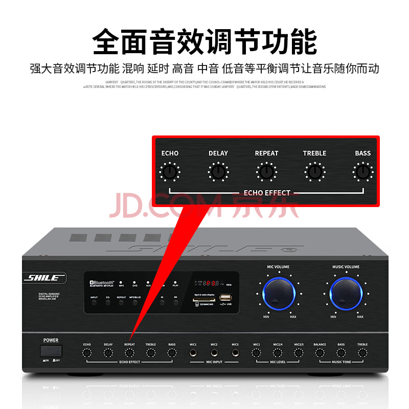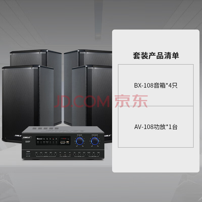 商品相册:狮乐(SHILE)中小型会议室音响组合套装 定阻蓝牙功放壁挂音箱无线话筒 AV108+108黑*4第1张/共8