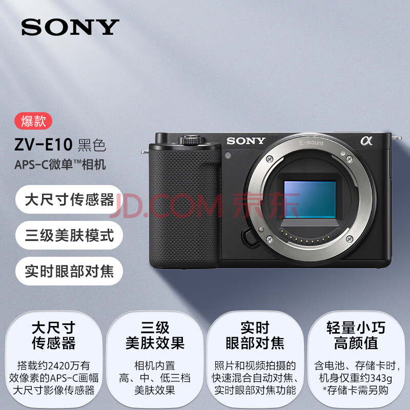 商品相册:索尼(SONY)ZV-E10 半画幅微单相机 单机身 美肤拍照 颜值机身 精准对焦 VLOG APS-C画幅 黑色第