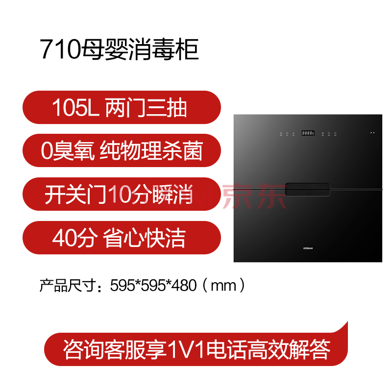 商品相册:老板(Robam)XB710A母婴消毒柜嵌入式碗柜烘干一体机105L双门三抽无臭氧纯物理杀菌奶瓶第