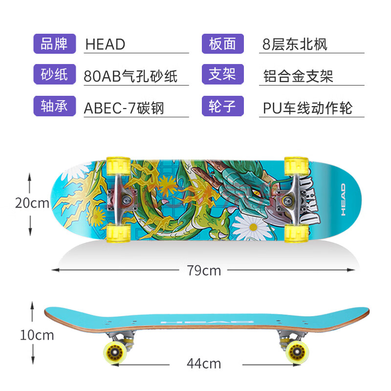 商品相册:海德(HEAD)滑板成人双翘板初学者儿童滑板男女刷街代步专业板圣诞礼物 凌云第