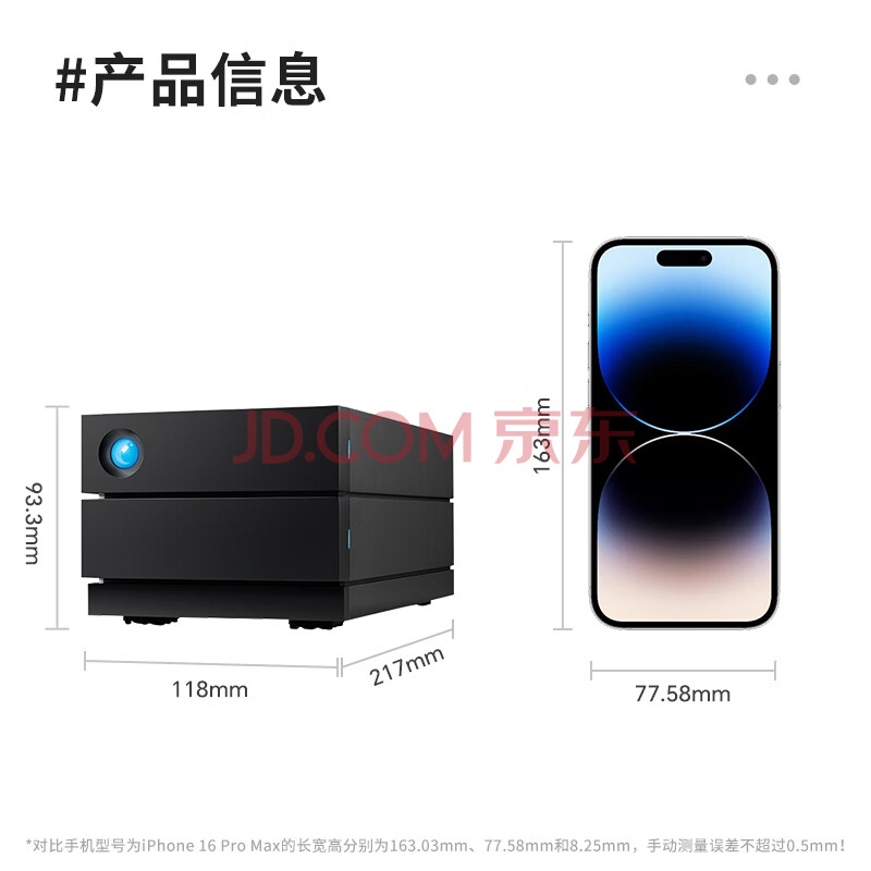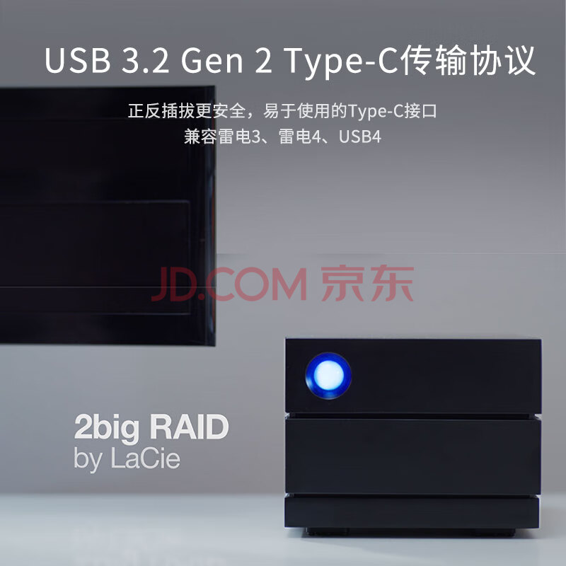 商品相册:LaCie雷孜 移动桌面硬盘 8TB 企业级 2big RAID 机械硬盘 Type-C/雷电3/4 双2盘位磁盘阵列 CMR垂直第1张/共7