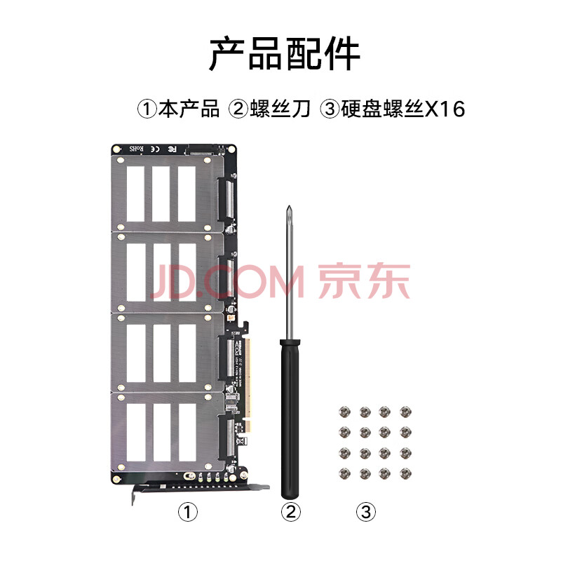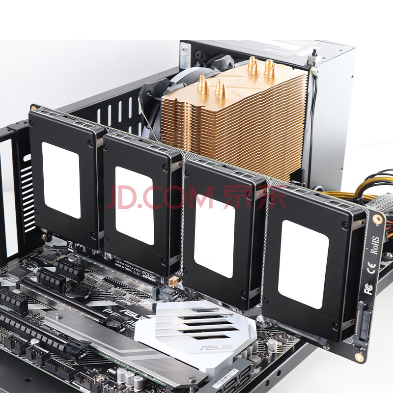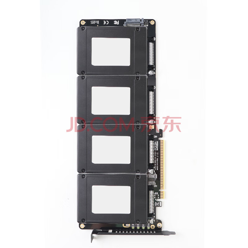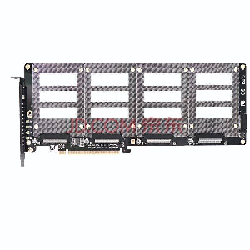 商品相册:佳翼(JEYI)PCIe转U.2 四盘位扩展卡 64Gbps高速 全高挡板 X16兼容PCIe 4.0/3.0/2.0 SSD固态硬盘转接卡第