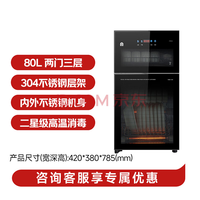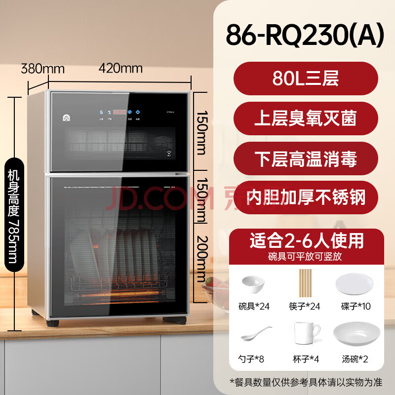 商品相册:容声家用消毒柜台式304不锈钢消毒碗柜三层大容量厨房碗筷立式高温二星级86-RQ230(A)第