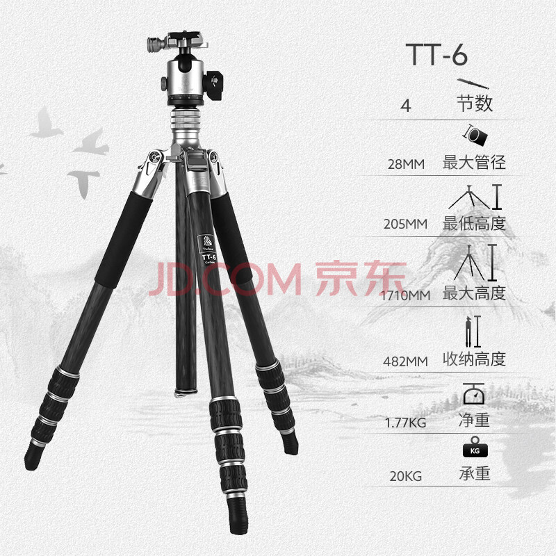 商品相册:富图宝(Fotopro)TT-6+LG-6 磐图.羽 匠心营造纯碳纤维轻量化摄影云台三脚架 1.77KG第1张/共6