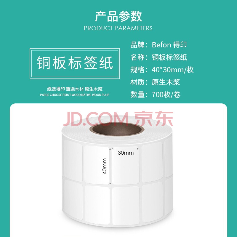 商品相册:得印(befon)不干胶标签纸 铜版纸 40mm*30mm 700枚 双排 条码纸 打印贴纸第