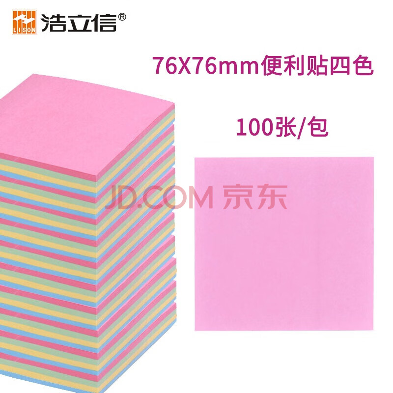 商品相册:【全网低价】浩立信(LISON)76*76mm 100张/包 便利贴 彩色 留言便签纸 便利备忘贴 便签贴纸 便签条 告示贴 学习用品第1张/共7