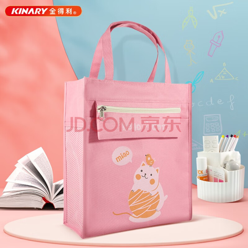 商品相册:金得利A4高颜值帆布袋美术袋学习袋补习袋小学生手提袋拎书袋初中生补课包帆布包美术包考试袋粉色DC1920第