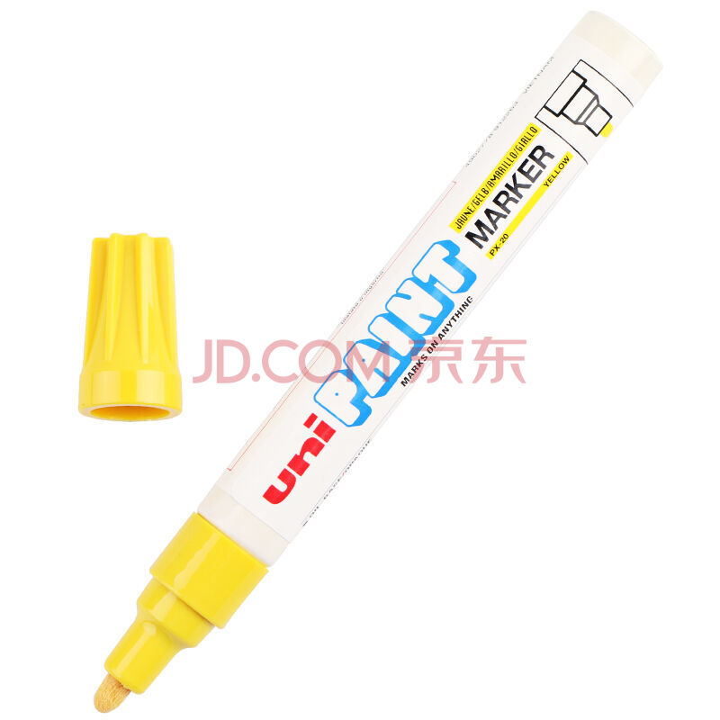 商品相册:uni三菱 PX-20 中字油漆笔(黄色) 2.2-2.8mm(12支装)(可用于汽车补漆)第1张/共9