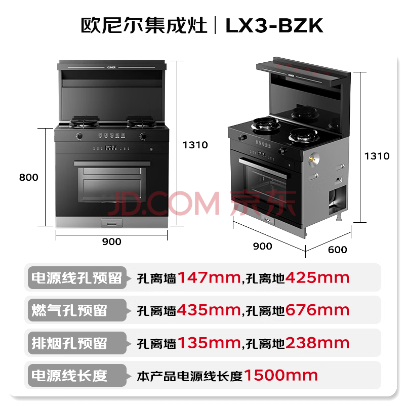 商品相册:欧尼尔(OUNIER)厨房家用变频大吸力集成灶 蒸烤炸炖消一体式 蒸箱烤箱 抽油烟机 燃气灶具 LX3-BZK-20Y第