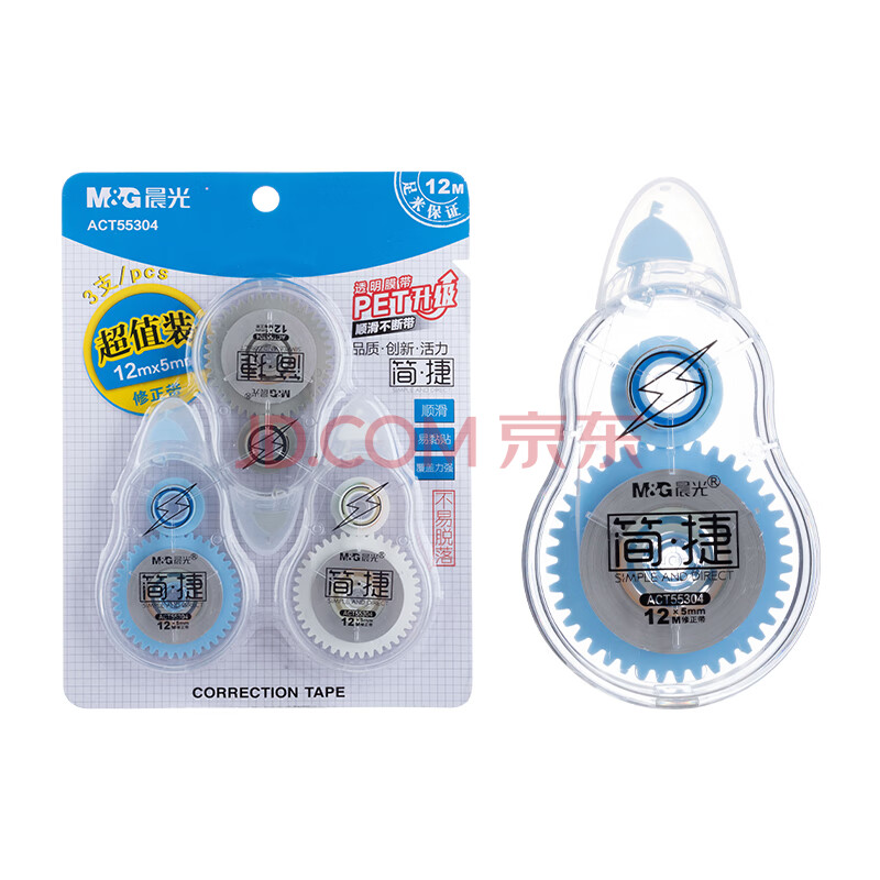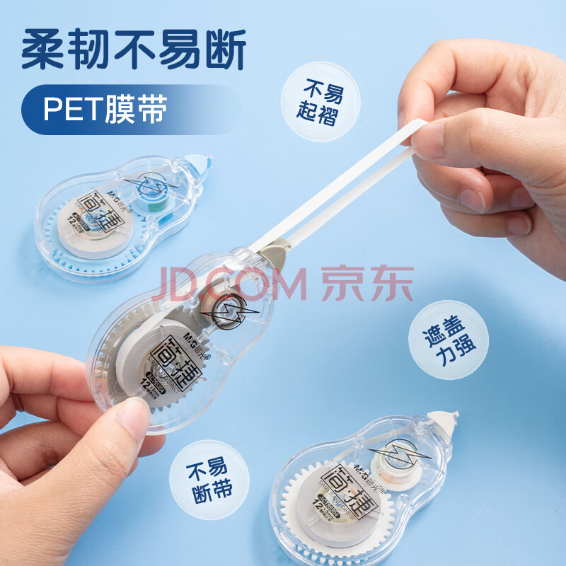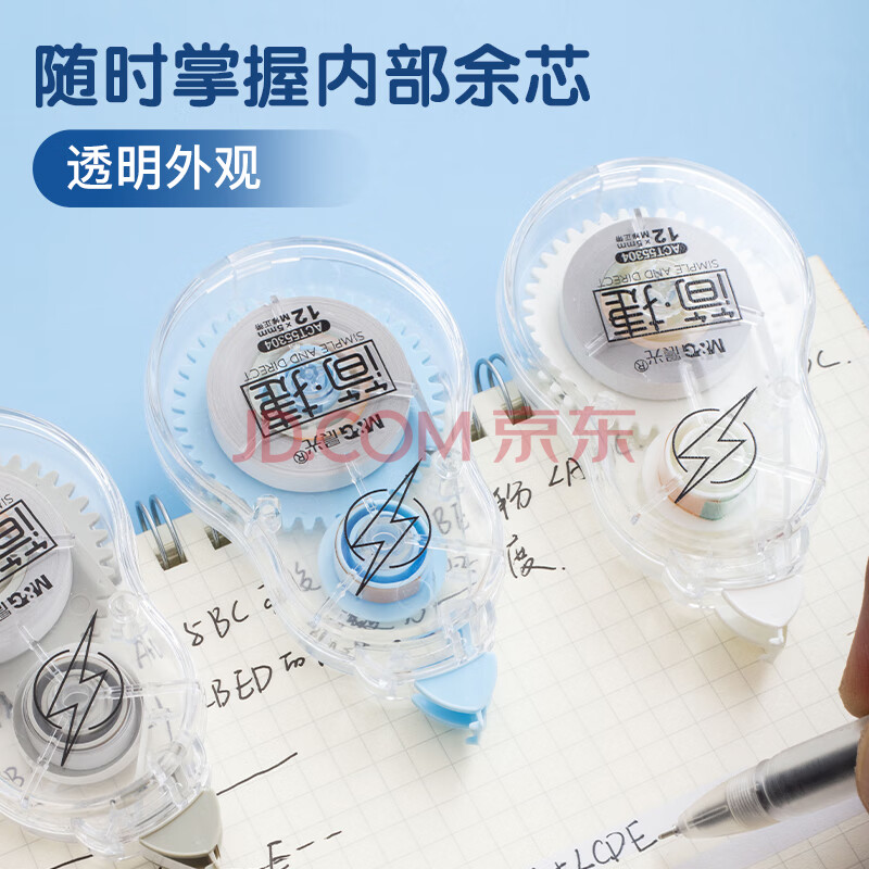 商品相册:晨光(M&G)文具36米透明带芯修正带 学生超值涂改带 简捷系列隐形改正带 顺滑不易断带 3支装第