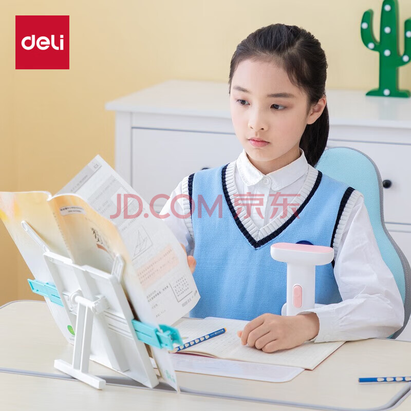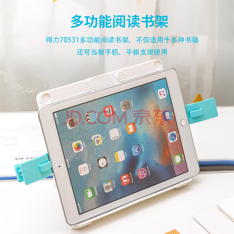 商品相册:得力(deli)多功能阅读架 可伸缩折叠便携式读书夹 儿童坐姿矫正课本夹书文具生日礼物开学文具白色第